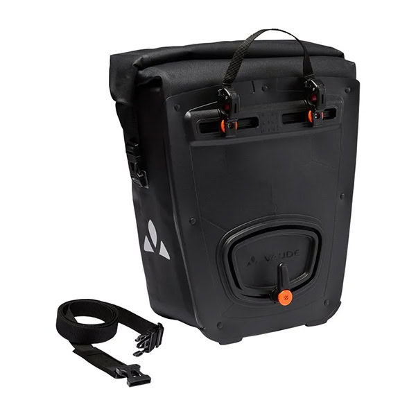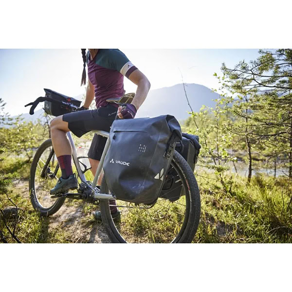 Los nuevos modelos de bolsas para bicicleta impermeables Proof están entre las estrellas de la colección de VAUDE Made in Germany. El material principal de la Proof Back UL Single es muy resistente a la abrasión, técnico y elegante y está fabricado en un 64% con Econyl reciclado y totalmente libre de PVC. La placa trasera es de material reciclado a partir de residuos domésticos. La bolsa para rueda trasera ha sido impermeabilizada con un sellado ecológico. Incluye, entre otras cosas, un compartimento plano con cremallera en la parte frontal, donde se pueden mantener a mano objetos pequeños como las llaves, el móvil o la tarjeta mensual. Por su equipamiento interior, la bolsa no solo resulta idónea para excursiones, sino también para ir y volver del trabajo. El compartimento acolchado para portátiles (hasta 13,3″) y un organizador con varios compartimentos de red aportan orden. Al contar con elementos reflectantes en los 3 lados visibles, la bolsa para bicicletas se puede fijar al portaequipajes por la derecha o por la izquierda. Contenido: 1 bolsa con 23 litros de capacidad. Con un candado de bicicleta pequeño (por ej. VAUDE TSA Combination Lock II, no incluido) la Proof Back UL se puede candar directamente al gancho QMR. El distintivo VAUDE Green Shape indica que el producto es funcional, respetuoso con el medioambiente y fabricado con materiales sostenibles y con certificación bluesign®.