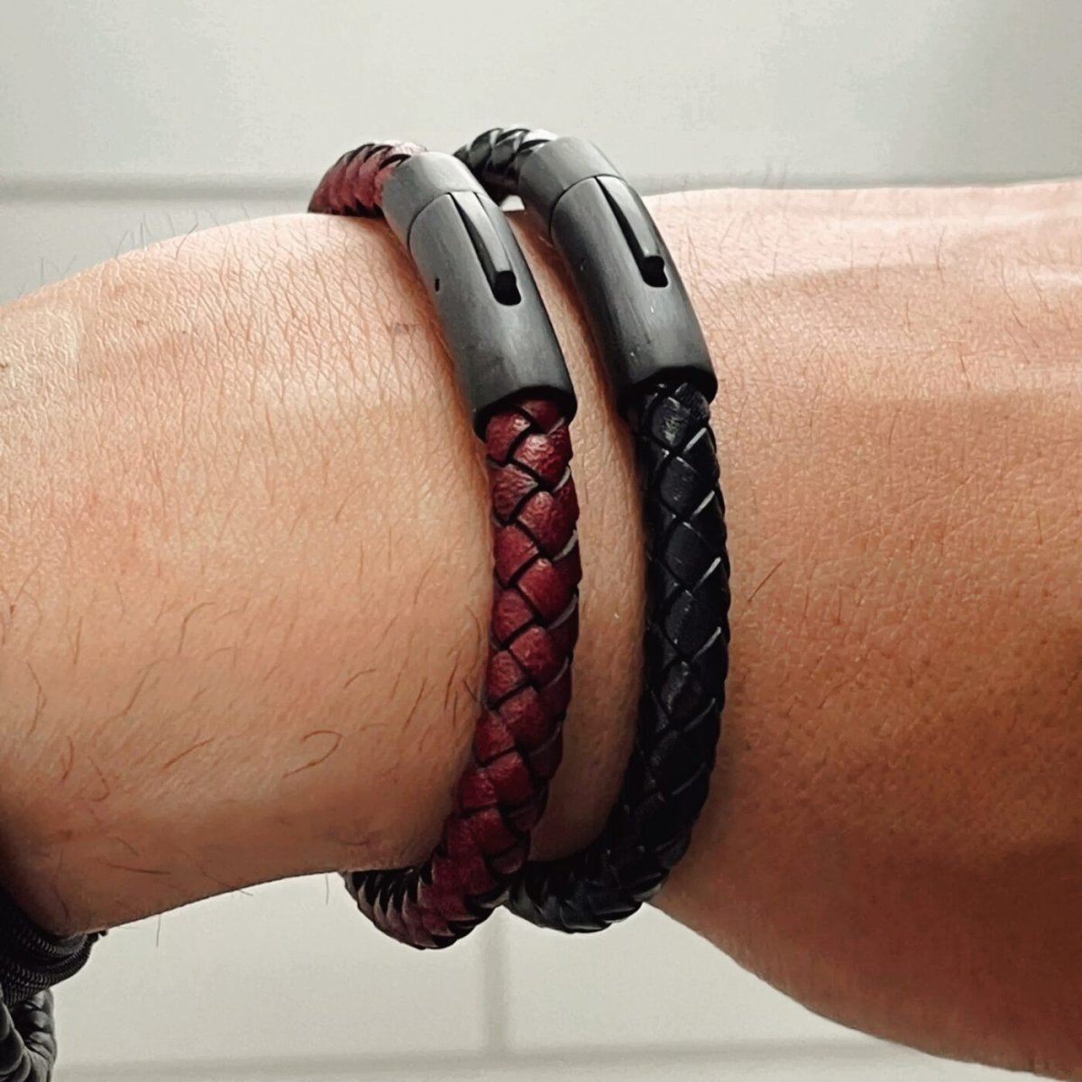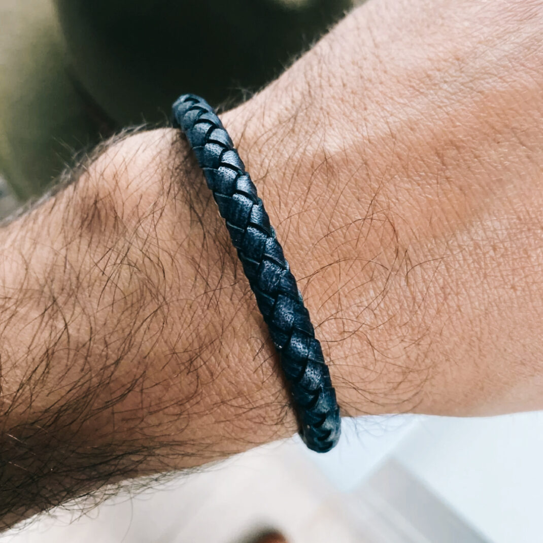 Pulsera de cuero masculina con un acabado elegante y sobrio.