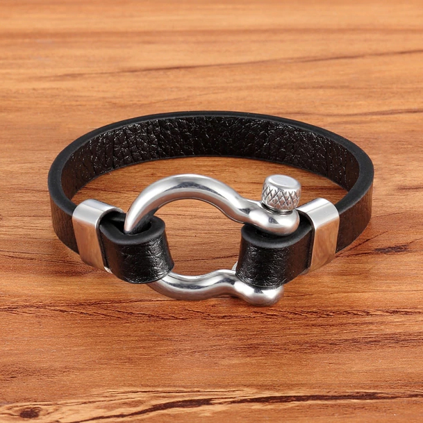 Pulsera de cuero de alta calidad, con piezas de acero inoxidable con un acabado elegante y sobrio.