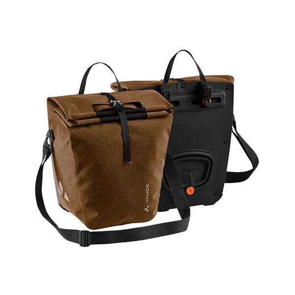 ReCycle Back: ¡el nombre transmite fielmente la filosofía de un producto destacado para la conciencia tranquila! Nuestros desarrolladores han logrado que los componentes de fijación se fabriquen a partir de plástico reciclado. La placa trasera está hecha con un 64% de material reciclado obtenido de residuos domésticos. El material de la bolsa, 100% reciclado, robusto y en diseño textil, es completamente libre de PVC y ha sido impermeabilizado con un sellado. Estas elegantes bolsas de compra están equipadas con asas robustas recubiertas con una cinta suave de poliéster reciclado, una apertura redonda para un mejor acceso y un fuelle de almacenamiento de material reciclado que permite sujetar mejor el contenido. El tirante desmontable y los logotipos reflectantes completan el equipamiento. Estas bolsas forman parte de nuestra gama de productos Made in Germany, esto significa que se fabrican en la sede de la empresa en Alemania. Contenido: 2 bolsas con 23 litros de volumen cada una. Con un candado de bicicleta pequeño (por ej. Abus 145/20) la ReCycle Back se puede candar directamente al gancho QMR.