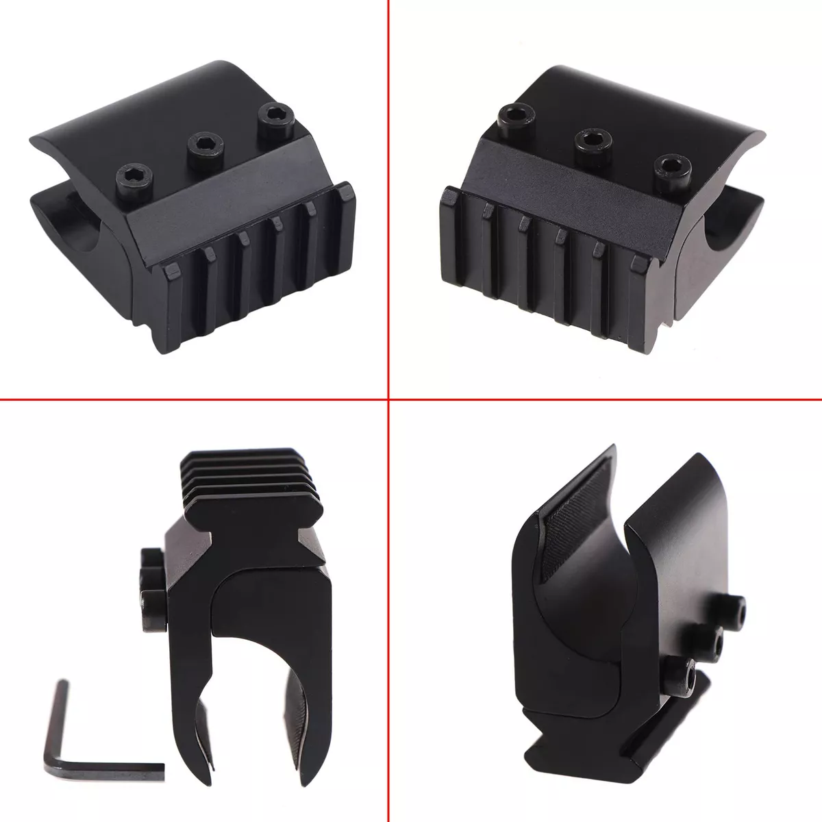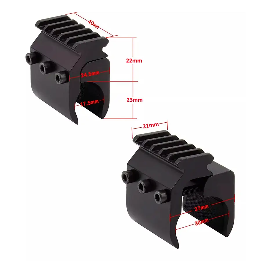 guía: montaje en barril Tipo de riel: Picatinny/Weaver Rango compatible: diámetro 0.669-1.181 in El paquete incluye: 1 soporte táctico. 1 llave hexagonal.