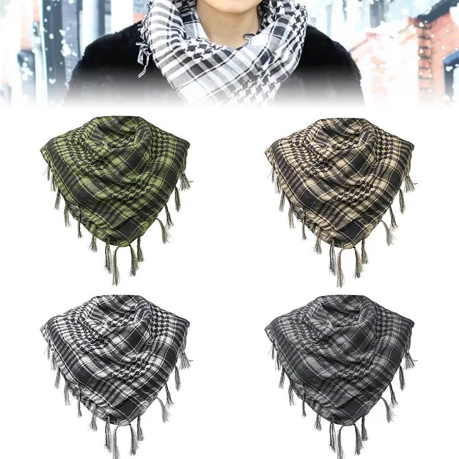 Shemagh-pañuelo a cuadros para hombre y mujer, bufanda táctica militar, árabe, con borlas ligeras, para senderismo, invierno.