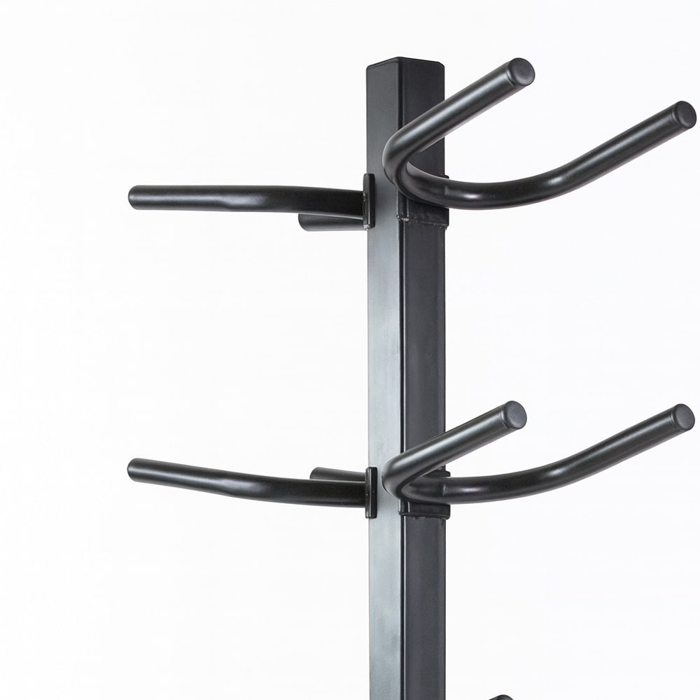 Este soporte vertical ofrece una solución práctica y robusta para almacenar balones medicinales y sacos búlgaros de forma segura. Su estructura metálica reforzada garantiza una gran estabilidad incluso con cargas elevadas, mientras que su diseño compacto permite aprovechar al máximo el espacio del gimnasio.