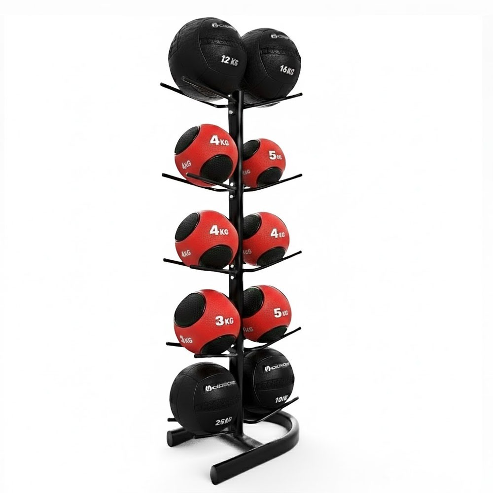 Este soporte vertical para balones medicinales es perfecto para mantener el área de entrenamiento ordenada y funcional. Su diseño compacto permite aprovechar al máximo el espacio disponible, ofreciendo una solución práctica tanto para gimnasios profesionales como para zonas fitness domésticas. Gracias a su estructura sólida y equilibrada, los balones se mantienen seguros y siempre al alcance, evitando caídas o deslizamientos. Además de mejorar la organización, aporta una estética moderna y profesional al entorno de entrenamiento, fomentando un ambiente más eficiente y motivador.