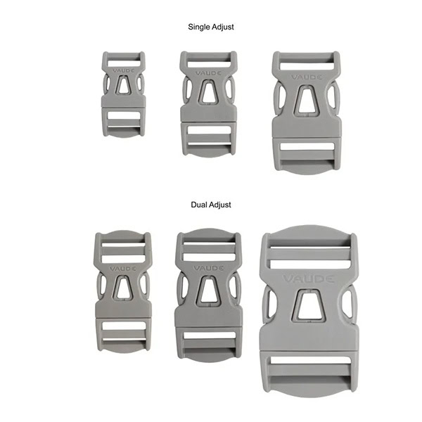 Hebillas de liberación rápida para correas de mochila. Con posibilidad de ajuste doble.