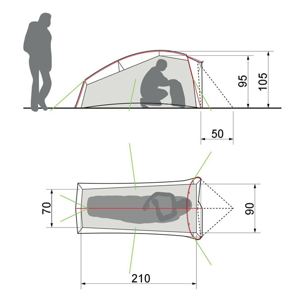 La ventilación impermeable es infinitamente ajustable y garantiza una ventilación óptima y un ambiente agradable para dormir. Esto significa que siempre estará bien protegido del viento y del clima cuando vaya en bicicleta, en un recorrido de fin de semana o en una peregrinación, y descansará bien a la mañana siguiente.