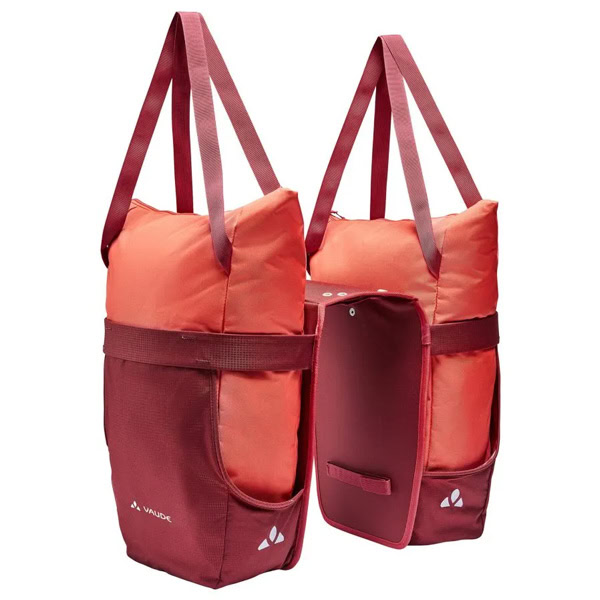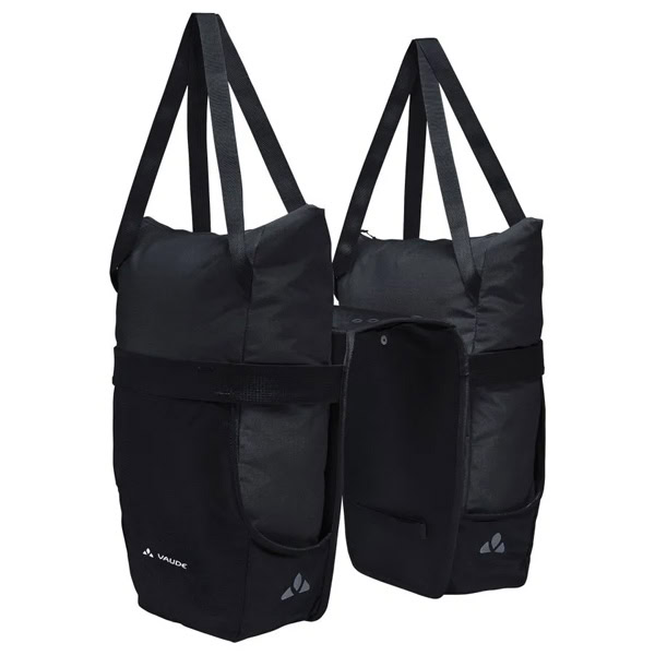 Refinada bolsa para bicicleta y bolsa de compra a la vez #bolsas extraíbles individualmente del estuche #posibilidad de montaje para distintos sistemas de fijación #climáticamente neutra, fabricación respetuosa con el medio ambiente con predominio de material reciclado
