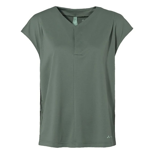 Funcionalidad y estilo discreto sobre la bicicleta: La camiseta Adlux de mujer para montar en bicicleta lo hace posible. El material, ligero y de secado rápido, es de tacto agradable y suave. La botonera oculta y el pliegue abierto con pieza de malla en la espalda aportan ciertos toques estéticos. Este último detalle proporciona, además, ventilación adicional. El diseño, moderno y femenino, atrae las miradas con su discreción en todas las excursiones y otras actividades al aire libre. El distintivo VAUDE Green Shape indica que el producto es funcional, respetuoso con el medioambiente y que está fabricado con materiales sostenibles.