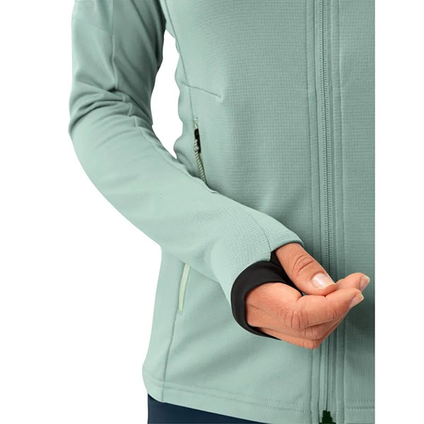 Ya sea como capa intermedia o como chaqueta ligera para el verano, la chaqueta polar Elope para mujer destaca por su excelente transpirabilidad, características prácticas y sostenibilidad. Es ideal para deportes al aire libre, ya sea como una capa cálida debajo de una chaqueta impermeable o softshell, o como una chaqueta ligera por sí sola. El interior de esta chaqueta polar cuenta con una estructura suave y agradable al tacto, que no solo proporciona un buen aislamiento gracias a su diseño tipo gofre, sino que también transporta la humedad hacia el exterior, facilitando un secado rápido.