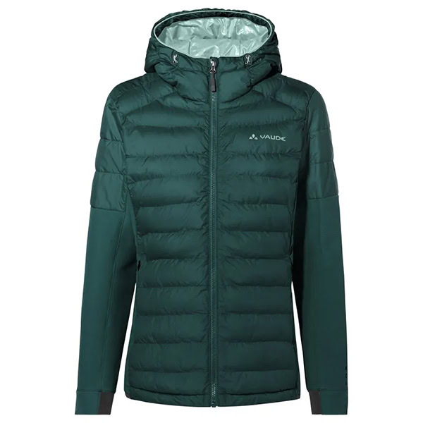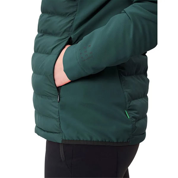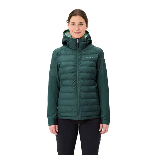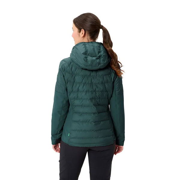 Con esta deportiva chaqueta de mujer para senderismo, las excursiones en otoño e invierno son un juego de niños. La Women’s Elope Hybrid Jacket es muy transpirable y ofrece una protección fiable contra el enfriamiento tras una difícil subida a la montaña. La chaqueta de mujer tiene un corte deportivo y es predominantemente estanca al aire. El material elástico, transpirable y ecológico en los brazos y los materiales aporta una gran libertad de movimientos. En los dos prácticos bolsillos con cremallera en el exterior y uno en el interior se pueden guardar con seguridad pequeños objetos de valor. Para mantener el cuerpo caliente incluso con temperaturas muy frescas, esta chaqueta de mujer está rellena de una fibra artificial similar al plumón en el cuerpo y sobre los hombros. El aislamiento Heatsphere Eco está hecho al 100% de botellas de PET recicladas y duplica la capacidad del plumón de mantenerse seco y caliente incluso en condiciones de humedad. La chaqueta de mujer es extremadamente ligera y fácil de limpiar. La capucha es regulable individualmente para proteger la cabeza contra el frío y el mal tiempo. La Women’s Elope Hybrid Jacket es la opción adecuada para mujeres activas familiarizadas con los altímetros y que valoran la preservación del clima. Porque todos los materiales de esta chaqueta de mujer están hechos de poliéster reciclado. El distintivo VAUDE Green Shape indica que nuestros productos son funcionales y respetuosos con el medioambiente y que están fabricados con materiales sostenibles y con certificación bluesign®.