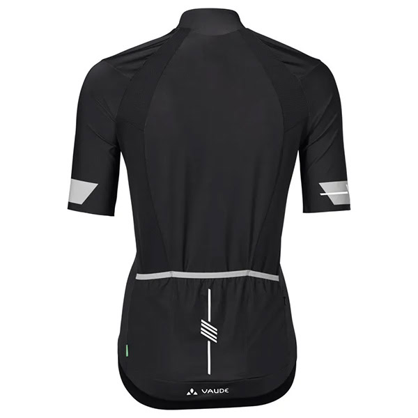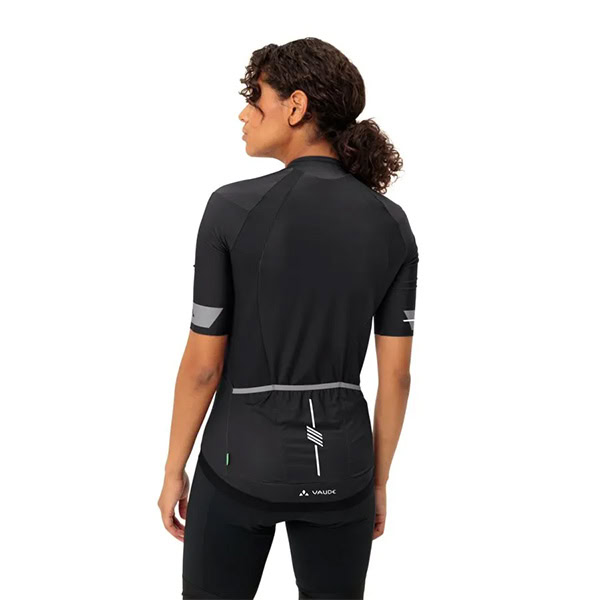 A los ciclistas deportivos les encantará este jersey: tiene un dobladillo trasero caído y es más corto en la parte delantera; también cuenta con una cremallera de longitud completa y es excepcionalmente cómodo, independientemente de tu posición al pedalear. Con una tela ultraligera y de alta elasticidad, hombros caídos con costuras muy planas, bandas elásticas siliconadas en las mangas que son extra largas para cubrir completamente los bíceps y una cintura elástica, este jersey se ajusta como una segunda piel. La malla de alta elasticidad integrada en el diseño proporciona ventilación adicional en la espalda. Tres bolsillos traseros abiertos están inclinados para un acceso conveniente durante tu paseo. Hay un pequeño bolsillo con cremallera dentro del bolsillo derecho para tus llaves o tarjeta bancaria. El jersey FZ para mujeres, hecho de materiales reciclados y certificados por bluesign®, está diseñado para ciclistas ambiciosos que valoran la calidad y la fabricación «Hecho en Europa»; combina perfectamente con los pantalones cortos con tirantes Furka. La etiqueta VAUDE Green Shape garantiza productos ecológicos y funcionales hechos de materiales sostenibles.