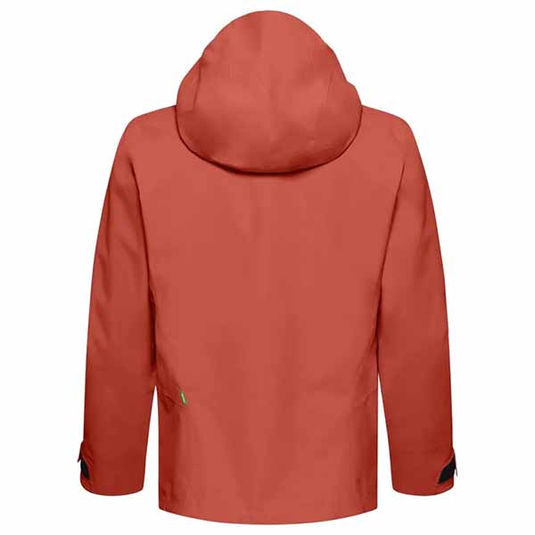 Los bolsillos delanteros elevados permiten acceder fácilmente a los objetos personales sin interferir con el arnés, y la chaqueta se mantiene en su lugar incluso con movimientos elevados de los brazos. La capucha es totalmente compatible con casco, el cuello alto protege contra tormentas y los dobladillos y puños ajustables aseguran una protección completa contra el viento y la nieve. Las ventilaciones en las axilas permiten una eficaz regulación del calor durante actividades intensas.