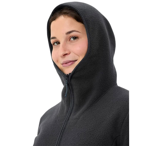 Para evitar que el calor se escape por la cabeza, por ejemplo durante una velada junto a la hoguera, las diseñadoras y diseñadores de VAUDE han dotado al hoodie Neyland II para mujer de una capucha con suave forro de jersey. Y para mantener las manos calientes —o guardar pequeños accesorios— dispone de dos bolsillos frontales con cremallera.