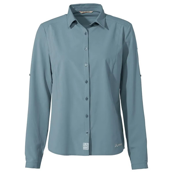 Querrás tener esta blusa de trekking en todas tus aventuras de senderismo o trekking, ya que tiene todo lo que necesitas para deportes al aire libre. La blusa Rosemoor es de fácil cuidado y de secado rápido, por lo que si la lavas por la noche, puedes estar seguro de que estará seca y lista para usar a la mañana siguiente. La tela ligera y transpirable proporciona un microclima cómodo para el senderismo. Además, la tela ofrece protección UV con un SPF de 40 y está tratada con el ingrediente activo de origen vegetal geraniol, que repele naturalmente mosquitos y zancudos. Lo apreciarás mucho en las cálidas noches de verano o cuando estés acampando cerca del agua. Las mangas se pueden enrollar fácilmente y fijar con una lengüeta para las temperaturas de verano. La blusa Rosemoor para actividades al aire libre está hecha de poliéster 100% reciclado. La etiqueta VAUDE Green Shape garantiza productos ecológicos y funcionales hechos de materiales sostenibles y certificados por bluesign®.