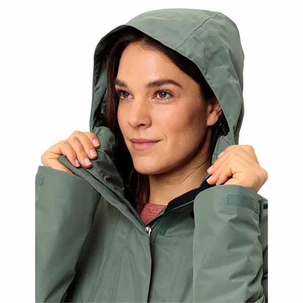 La chaqueta acolchada Rosemoor también destaca por su sostenibilidad, ya que cuenta con una cremallera frontal fácil de reparar, lo que prolonga su vida útil. Fabricada con un acabado Eco Finish respetuoso con el medio ambiente, esta chaqueta es repelente al agua y libre de fluorocarbonos (PFC). Además, está certificada con la etiqueta VAUDE Green Shape, lo que garantiza que es un producto funcional y respetuoso con el medio ambiente, elaborado con materiales sostenibles.