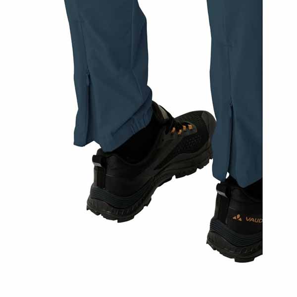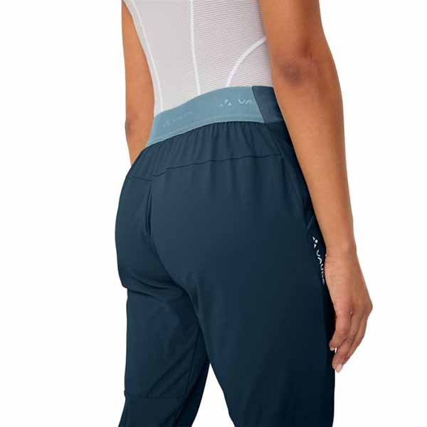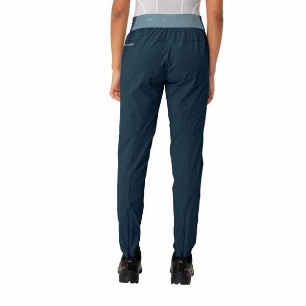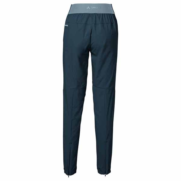 Pantalón ligero, atlético y de corte ajustado de mujer para montañismo, con cintura elástica, ancha y plana. En sus dos bolsillos laterales se pueden guardar accesorios. Para que resulte más fácil ponerse el pantalón, hemos incluido cremalleras en los bajos. Este ligero pantalón de montañismo para mujer convence por su funcionalidad, que lo convierte en la opción ideal para excursiones rápidas o reuniones vespertinas. Este pantalón está producido, entre otros, con neumáticos reciclados, con un proceso certificado de balance de masas. Además, incluye Eco Finish, sin PFC, que repele el agua y la suciedad. El distintivo VAUDE Green Shape indica que el producto es funcional, respetuoso con el medioambiente y fabricado con materiales sostenibles y con certificación bluesign®. Además, el pantalón para montañeras es climáticamente neutro: las emisiones de los materiales, el proceso de producción y el envío se han calculado integralmente y reducido sistemáticamente. Las emisiones perjudiciales para el clima que actualmente son inevitables se han compensado por completo mediante la organización independiente sin ánimo de lucro «myclimate».
