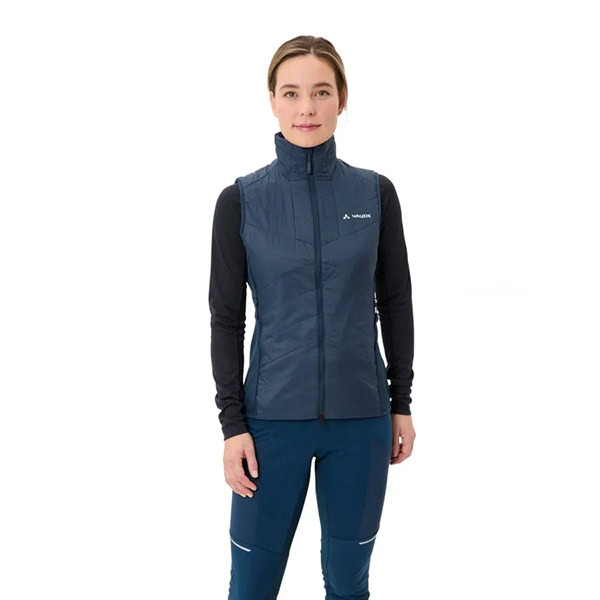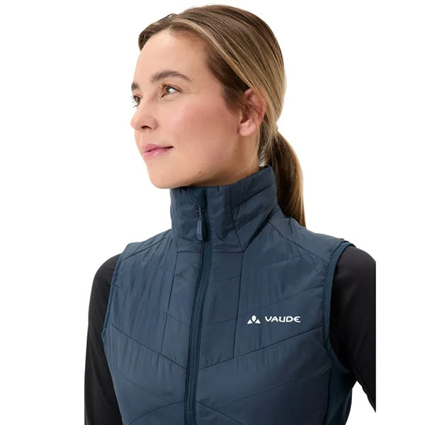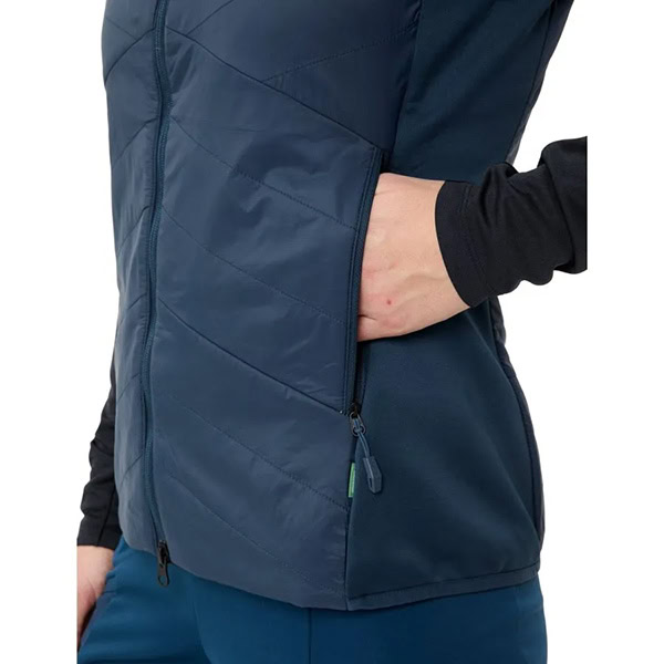 El chaleco Sesvenna para mujer es una prenda térmica respetuosa con el medioambiente para excursiones de esquí y montañismo. Gracias a sus piezas elásticas, el ligero chaleco relleno de aislante PrimaLoft® Silver Insulation Eco también resulta idóneo en caso de intensas nevadas. Las zonas laterales, elásticas y de alto rendimiento, son sumamente transpirables y mejoran la libertad de movimientos. El chaleco aislante y de corte ceñido para mujer se pliega quedando muy compacto y cabe en cualquier lugar. Los dos bolsillos de la chaqueta, con un suave forro, son cómodamente accesibles incluso con la mochila puesta. Para preservar los recursos fósiles y, por tanto, también el clima, la chaqueta aislante para mujer está hecha predominantemente de materiales reciclados certificados por el sistema bluesign®. El chaleco ha sido fabricado de forma ecológica con Eco Finish sin fluorocarburos (PFC) perjudiciales para el medioambiente y repele el agua. Como miembro de alto rango en la organización independiente Fair Wear, VAUDE está comprometida con el mantenimiento de unas condiciones laborales y unos salarios justos.
