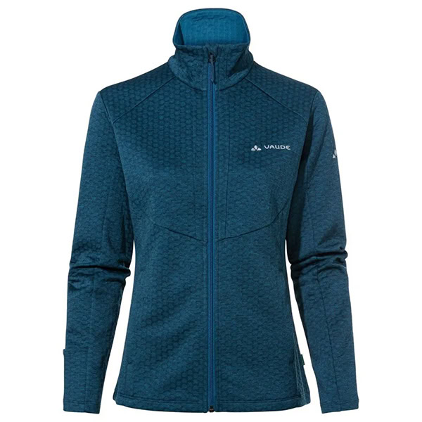 Fabricada con poliéster reciclado, esta prenda está certificada con el sello VAUDE Green Shape, que garantiza un proceso de producción ecológico y responsable.