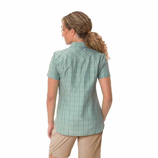 La Women’s Tacun Shirt II, a cuadros y de manga corta, tiene todo lo que necesita una blusa funcional para senderismo con múltiples aplicaciones: es transpirable, de cuidado sencillo y secado rápido. Esta blusa de verano es agradable de llevar por su mezcla de tejido especialmente ecológico y respetuoso con la piel, compuesto por la fibra funcional inodora Woodfiber con base de fibras de madera y un poliéster. El distintivo VAUDE Green Shape indica que nuestros productos son funcionales y respetuosos con el medio ambiente, y que están fabricados con materiales sostenibles y con certificación bluesign®.